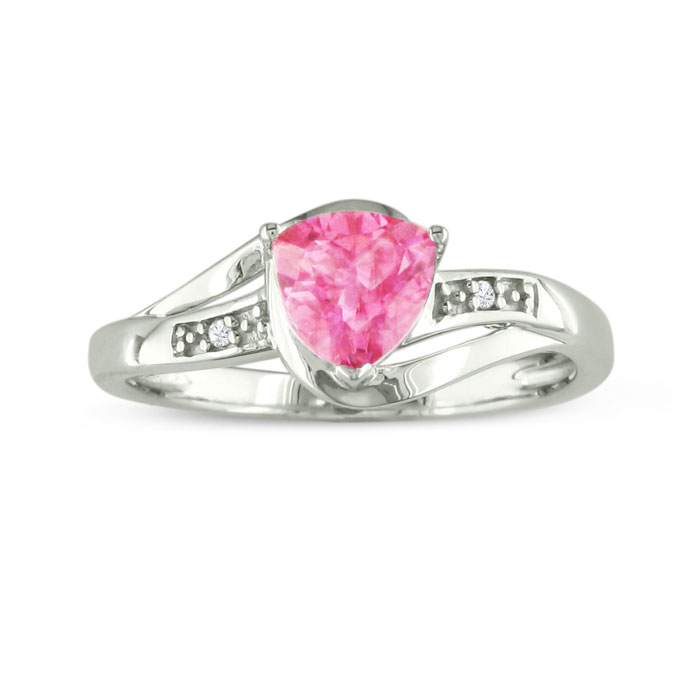 Sapphire Rings September Birthstone 3/4ct Trillion Created Pink Sapphire and Diamond Ring In Sterling Silver SuperJeweler 700x700 picture